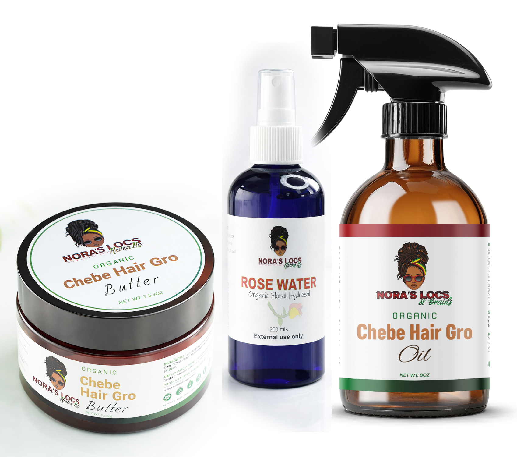 Chebe Hair Butter 3.53 Oz + Chebe Organic Hair Oil 8 Oz Spray bottle + Pure Organic Rose water